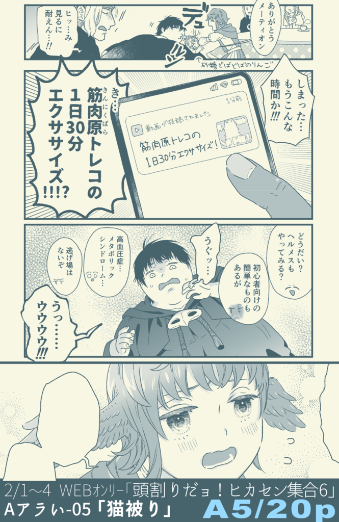 こたつにすっかり堕落させられてしまったヘルメスの本です。ラハブレアも太ります。果たして二人は元の体型に戻れるのか!!