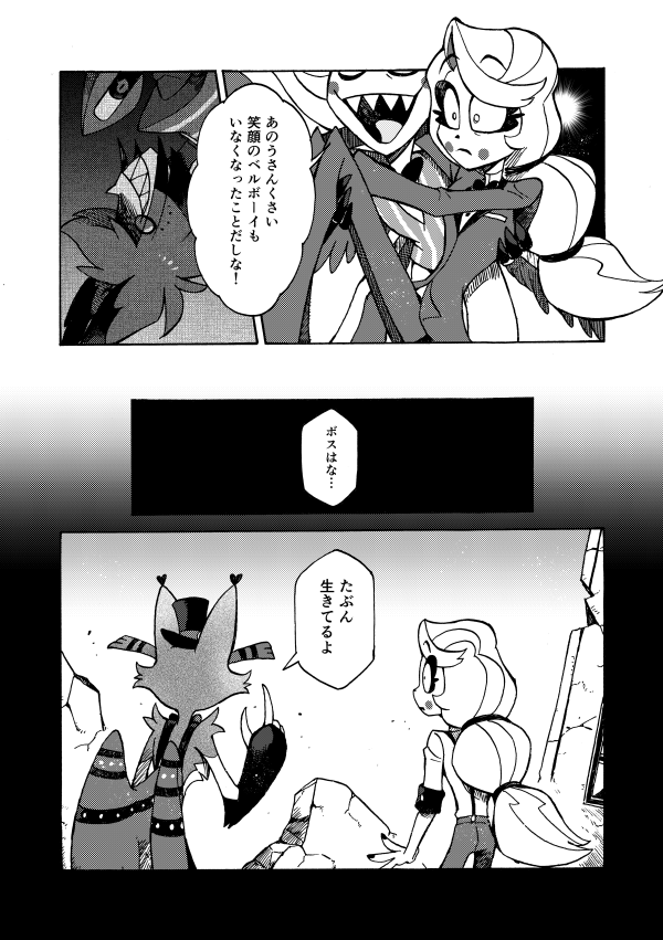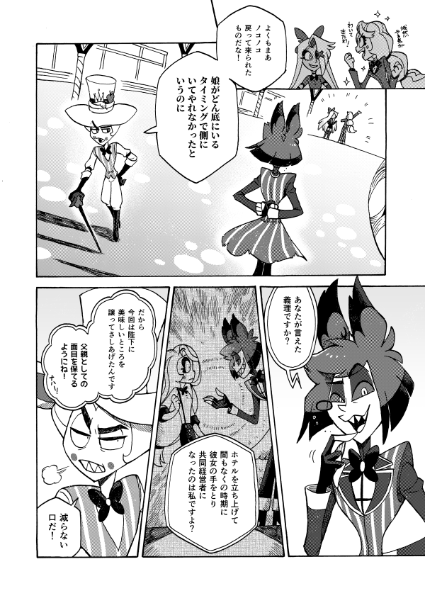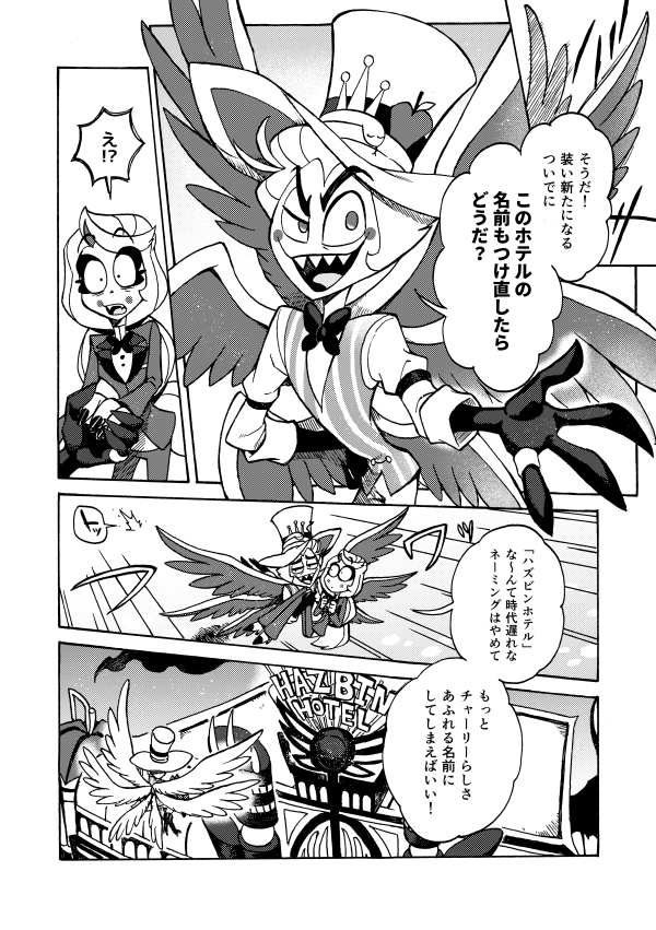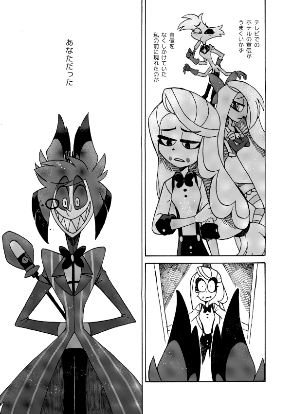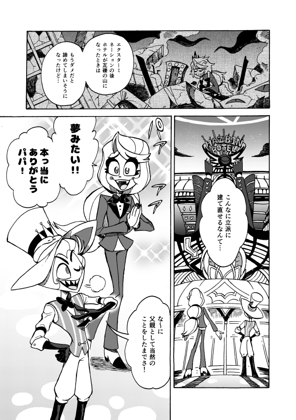 ホテル建て替えのときにアラスターの部屋を準備するかしないかモーニングスター親子で揉めたり、戻ってきたアラスターがルシファーとバチバチ火花を散らしたりも。パイロット版の頃の小話もちょこっとあります。
