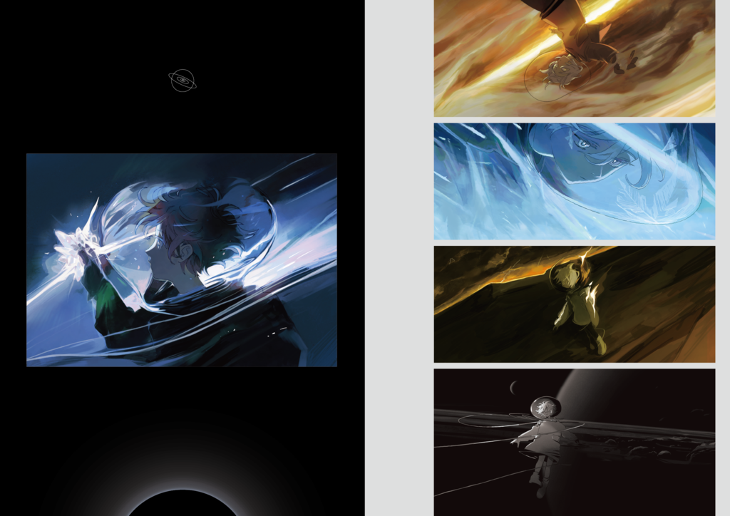 This book compiles illustrations posted on social media in 2025 alongside newly drawn pieces. It features predominantly space- and star-inspired artwork, showcasing asymmetrical character designs alongside science and nature motifs.(using translation)