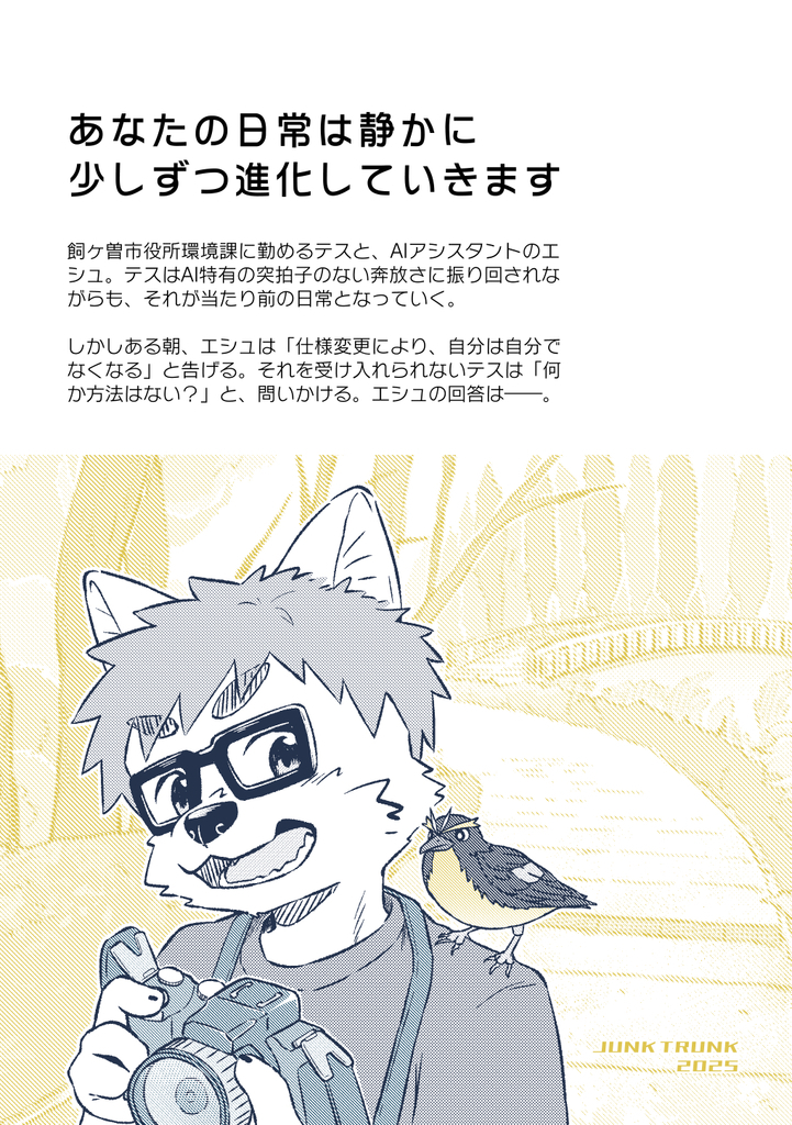 飼ヶ曽(かうかそ)市役所環境課に勤めるテスと、AIアシスタントのエシュ。